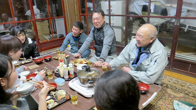 時がたつにつれて蔵人たちともなじんで、笑顔の数が増えてくる。
