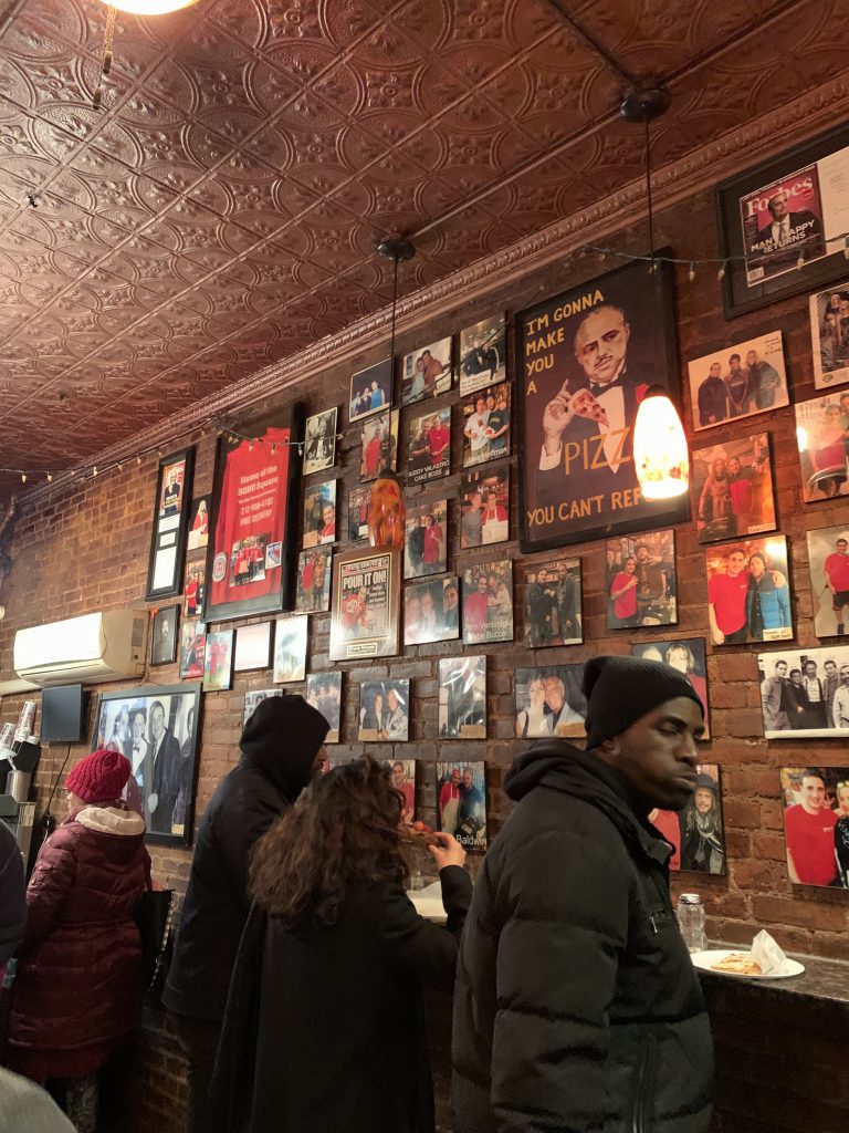 N.Y.で一番美味しいとアレックスが力説する「ピザ屋」に行きました。有名人のサインと写真が壁中に貼られていて、いかにもN.Y.という雰囲気のお店でした。