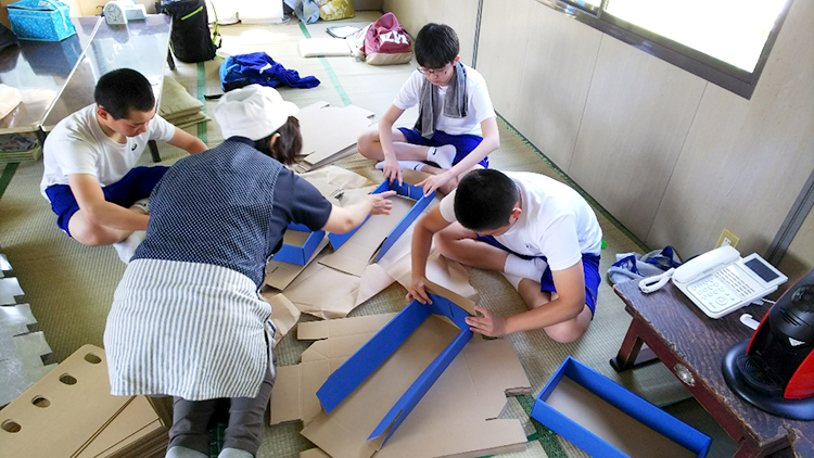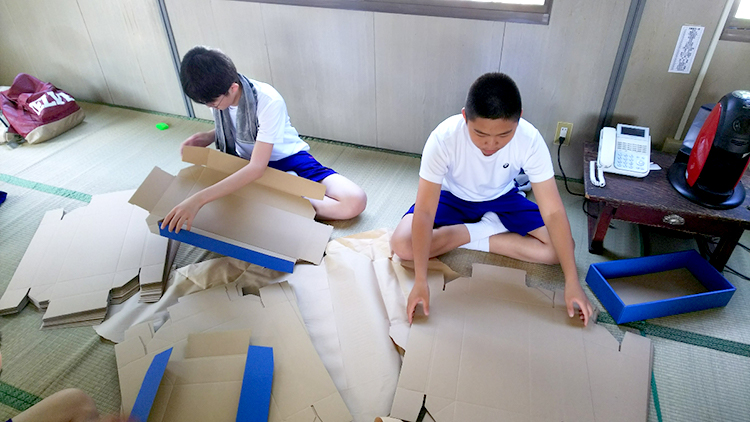箱作りは、ガムテープの切り貼りが難しいとの事でした。