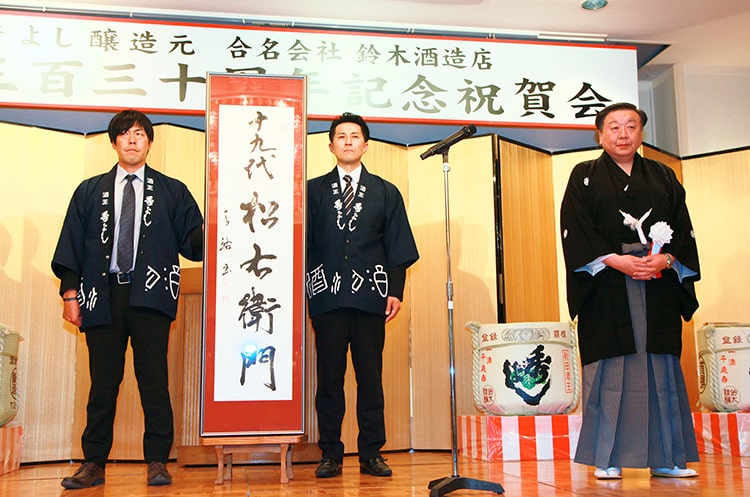 式典には、多くのご来賓と「秀よし」を支え続けてくれた方々がご参加頂いたことは、心からありがたく思っております。私が受け持つ時代はわずかではありますが、同じ時代を生きる人々とこのように酒杯を交わすことができることに、大いなる感慨を覚えました。