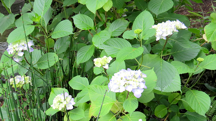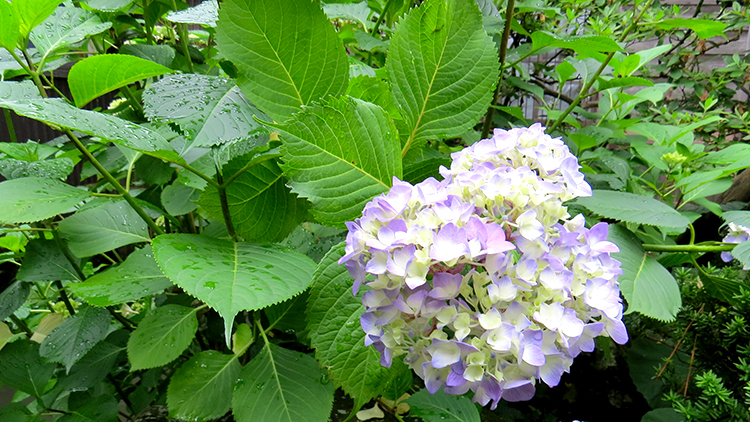 さすがアジサイは梅雨時のスター選手だけあって晴れ晴れした日よりも雨の日の方が映えます。