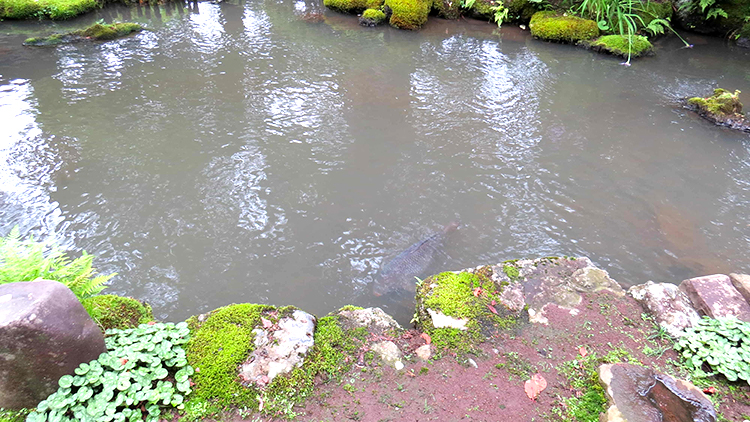 お庭の川は雨の影響で若干濁っており見えづらいかもしれませんが鯉達はいつも以上にバシャバシャと元気に泳いでおります。彼らはこの時期は水温の関係上、低気圧で雨が降ったほうが活性が上がり元気になります。