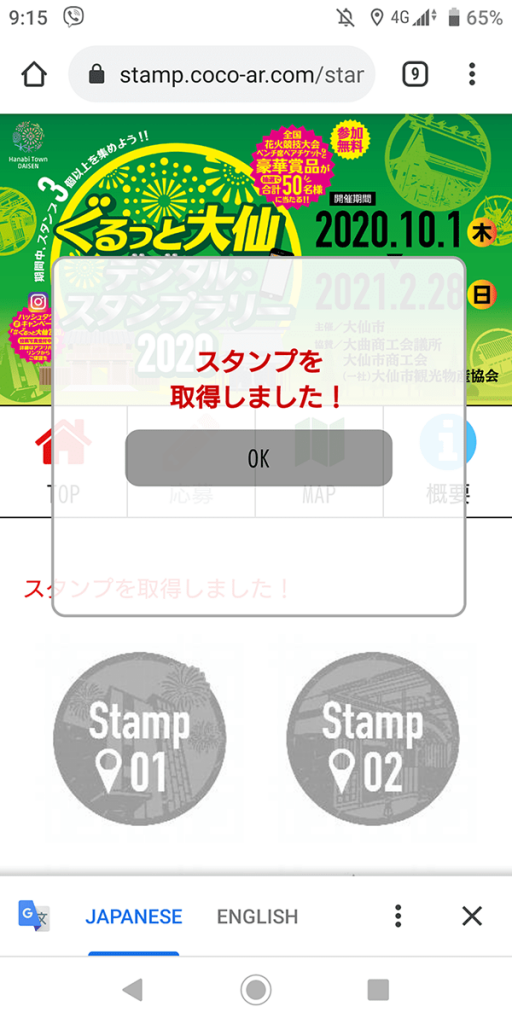 10月から「大仙デジタル・スタンプラリー2020」が始まりました。