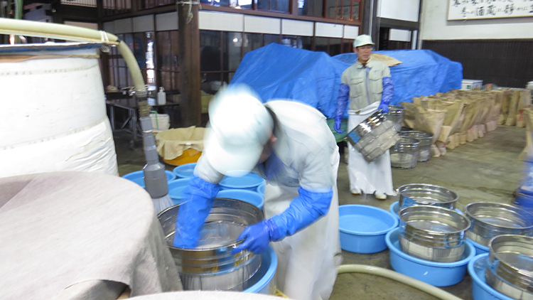 自分が今まで慣れ親しんでいながらも、どうやって造られているかわからなかった清酒。それが今まさに自分のいる場所で仕込まれ、出来上がり、瓶に詰められ、ラベルを貼り、出来上がるという場に居るというのはなかなか感動します。
