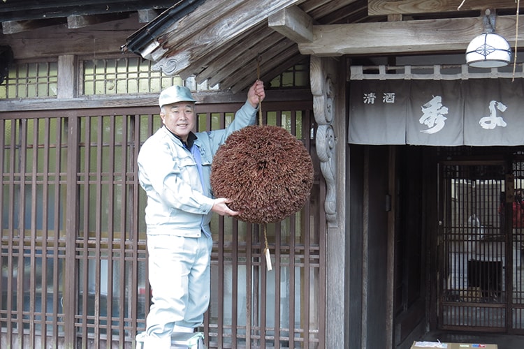 新酒ができると酒蔵では杉玉を新しいものに取り替えます。