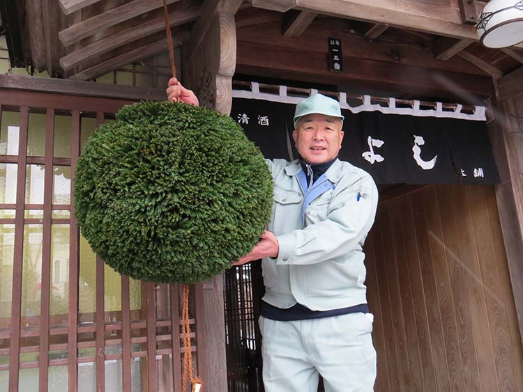 杉玉を取り替えるのは、毎年杜氏の仕事です。(ニコニコです)