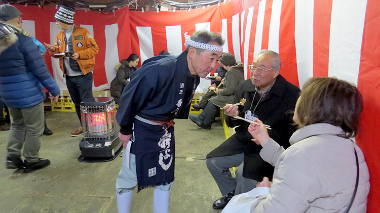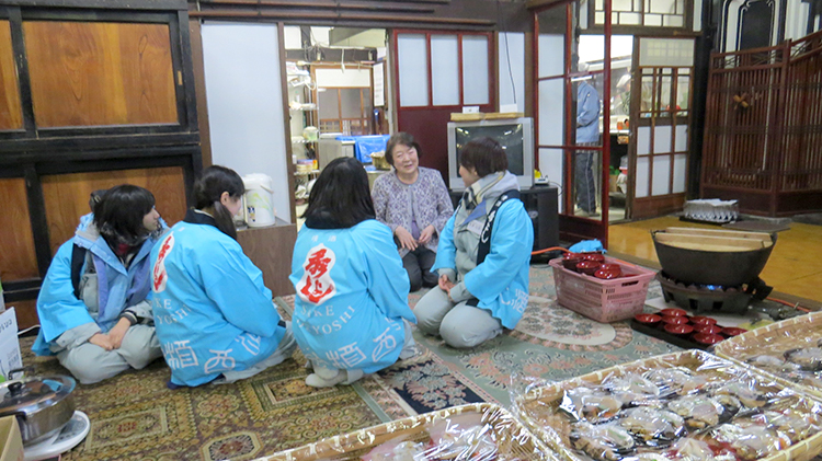 インターンの女子大生達も大活躍でした。酒屋唄まで練習しての参加です。
