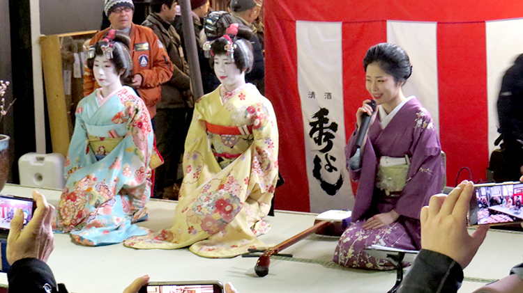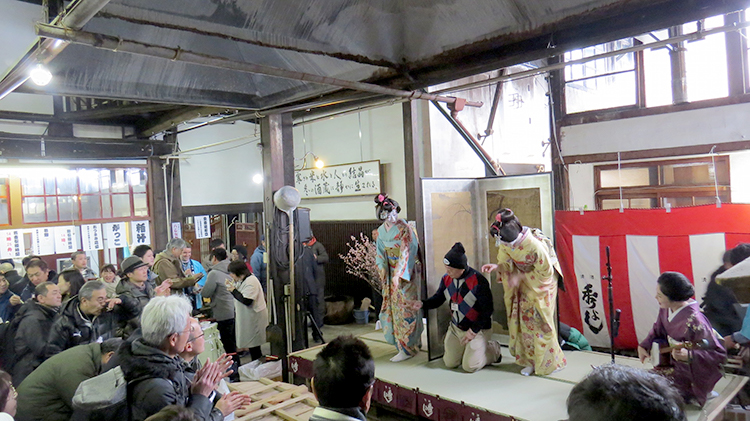 華やかな踊りに、お座敷芸の「とらとら」。芸妓さんによる三味線の生演奏は滅多に聞けませんし、お座敷芸は滑稽で皆んなで盛り上がっていました。