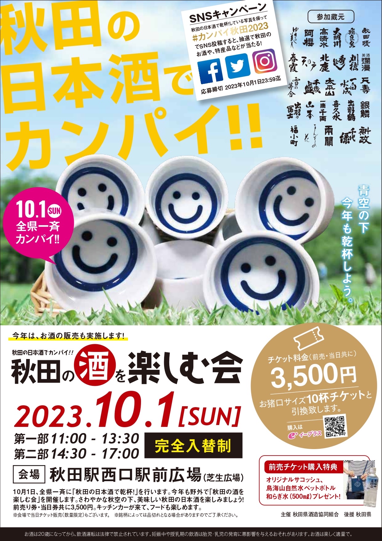 今週の日曜日10月1日、秋田駅西口駅前広場にて「秋田の日本酒で乾杯!」が行われます。