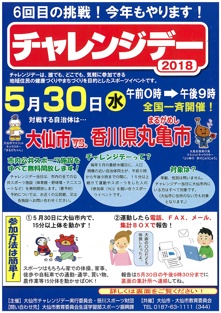 今年のチャレンジデー、秀よしのある大仙市は、香川県丸亀市との対戦でした。