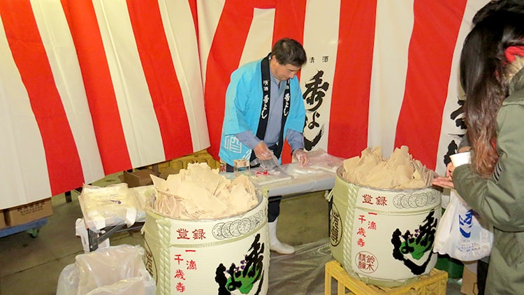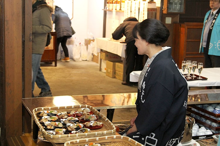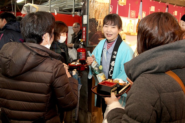 ① 特別限定酒「八乙女」の飲み放題、「秀よし」の各種お酒の利き酒。 ② 造り酒屋の伝統料理:鶏や豚肉の酒粕漬け、ハタハタ寿司、煮物、粕汁、漬物、ぶっ掛け蕎麦、お餅など。 ③ 酒粕の詰め放題(100円チャリティー)、酒屋若い衆による餅つき。 ④ フィナーレを飾る「大ジャンケン大会」 ⑤ 各種催し物(当日のお楽しみです!) (内容は都合により変更になることがあります) |